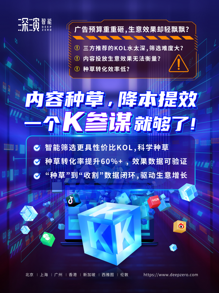 公海jcjc5500智能K参谋对接电商平台后链路,可针对每一个KOL内容种草情况进行全链路评估,“种草”到“收割”链路闭环,效果数据可验证;