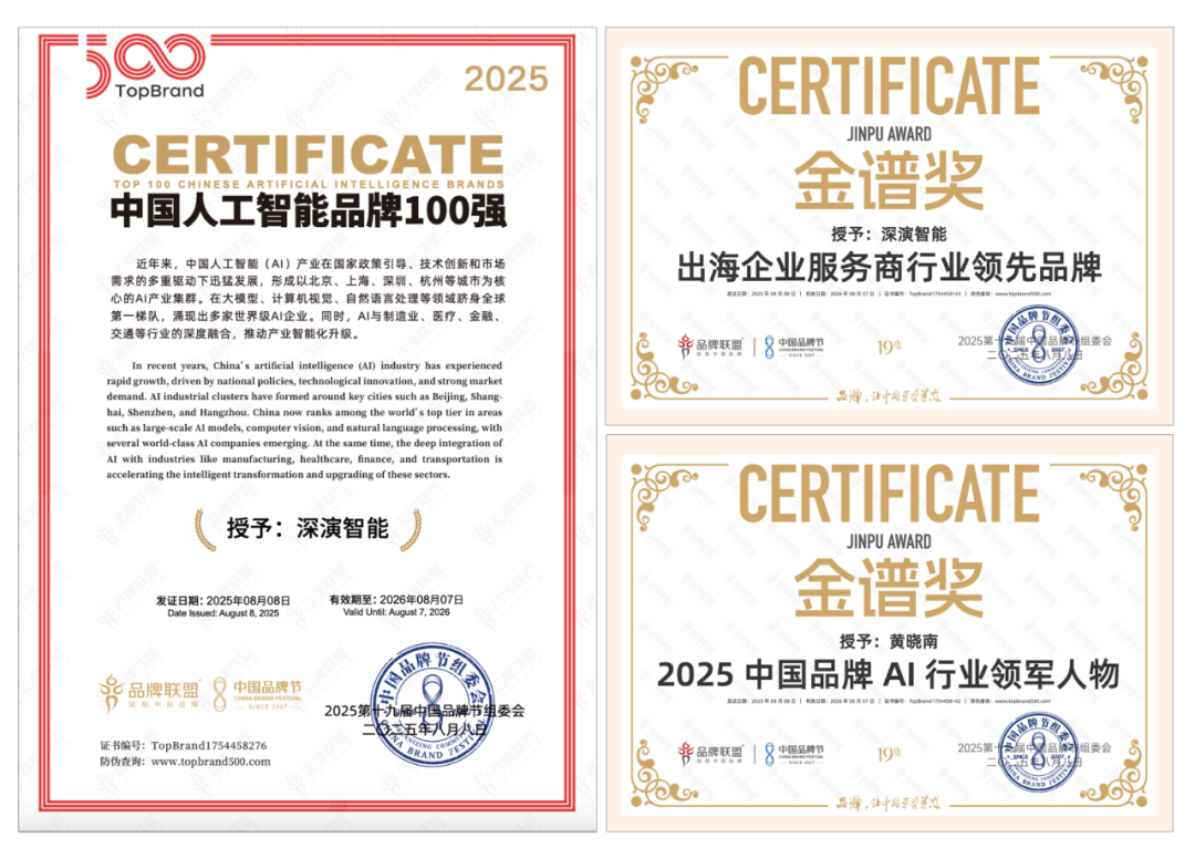 8 月 9 日晚举办的荣耀盛典上,公海jcjc5500智能凭借深厚的 AI 技术实力与出色专业的出海服务能力,斩获 “2025 中国品牌节金谱奖・出海企业服务商行业领先品牌”“2025 中国人工智能 100 强” 等多项重磅奖项。其创始人兼 CEO 黄晓南荣膺 “2025 中国品牌 AI 行业领军人物” 称号。未来,公海jcjc5500智能将紧跟时代步伐,持续聚焦 “AI 与出海”—— 这一方向高度契合时代脉搏与中国品牌发展的迫切需求,旨在汇聚智慧力量破解发展阻碍,为中国品牌赋能。